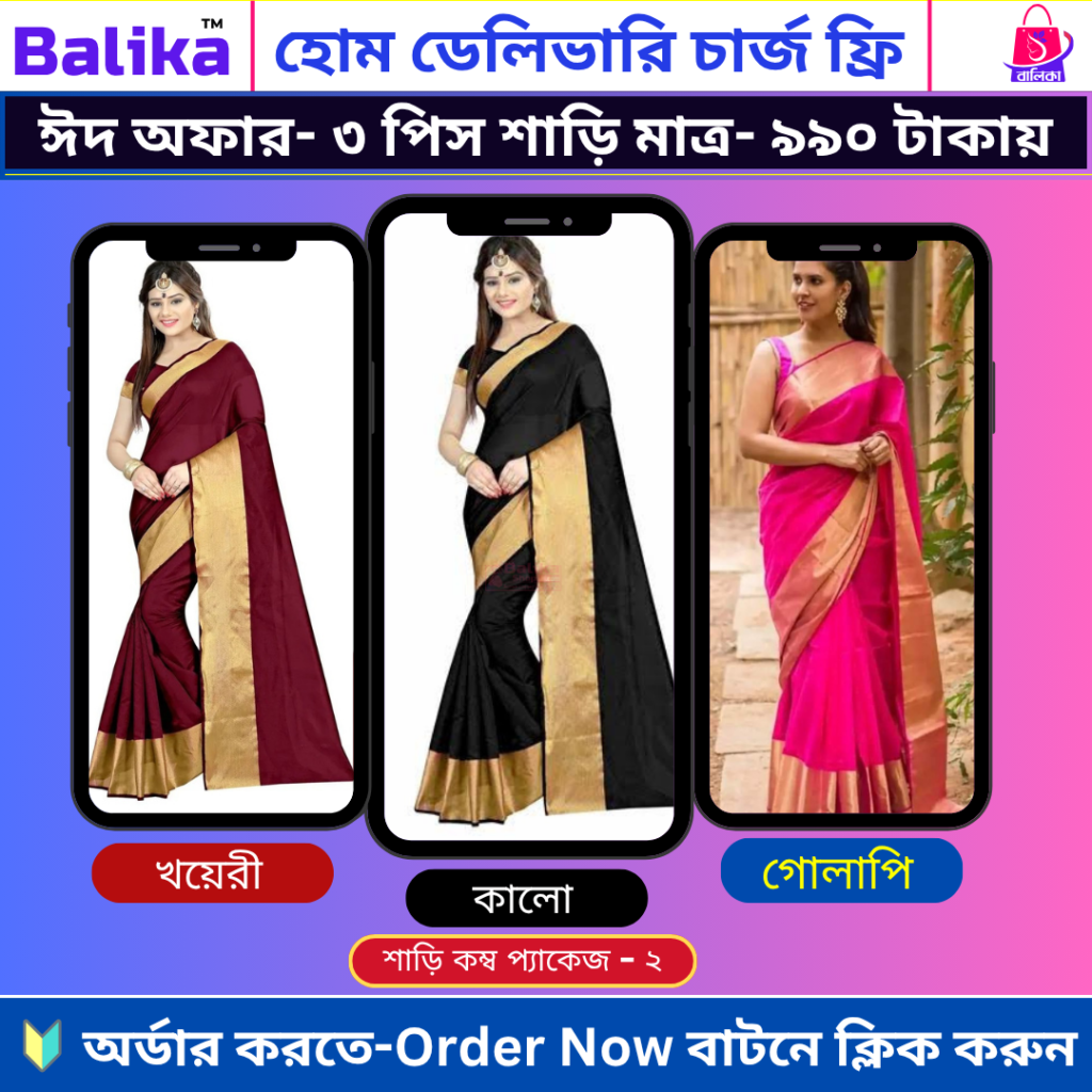 🔥#ঈদ_স্পেশাল_অফার-3 পিস শাড়ী মাত্র-৯৯০ টাকায়🔥